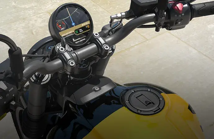Kursi rendah, pijakan kaki di tengah, dan posisi tegak, ergonomis Guerilla 450 beradaptasi dengan gaya berkendara Anda dan memungkinkan Anda menangani segala hal, mulai dari kemacetan lalu lintas hingga tikungan sempit.